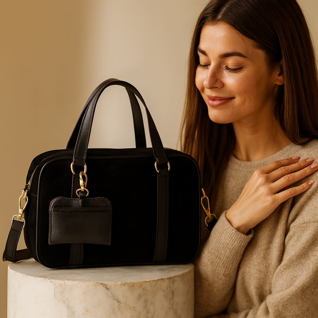 🔹 Može se nositi u ruci ili preko ramena.